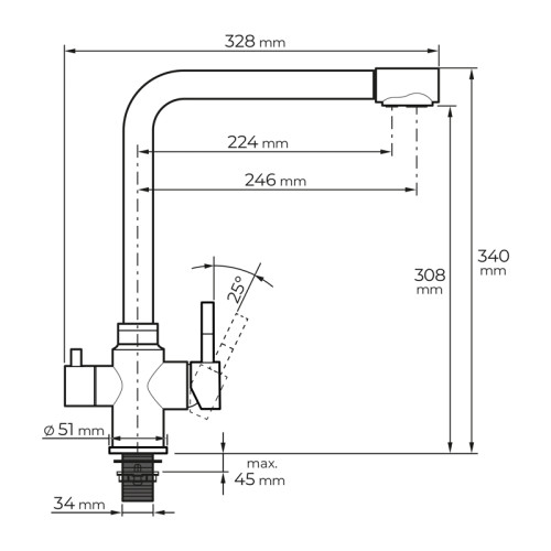 - Jednoduchá instalace - Baterie je dodávána s kompletním příslušenstvím pro snadnou instalaci do standardního otvoru v kuchyňském dřezu.