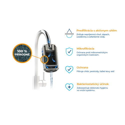 Tento domácí vodní filtr dokáže okamžitě, jednoduše a bezpečně přefiltrovat vodu přímo z vodovodní baterie díky nové generaci filtrační technologie.